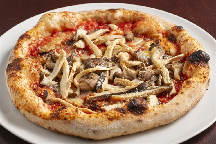 4種の信州きのこに、トマトとアンチョビが香る赤のピッツァ。